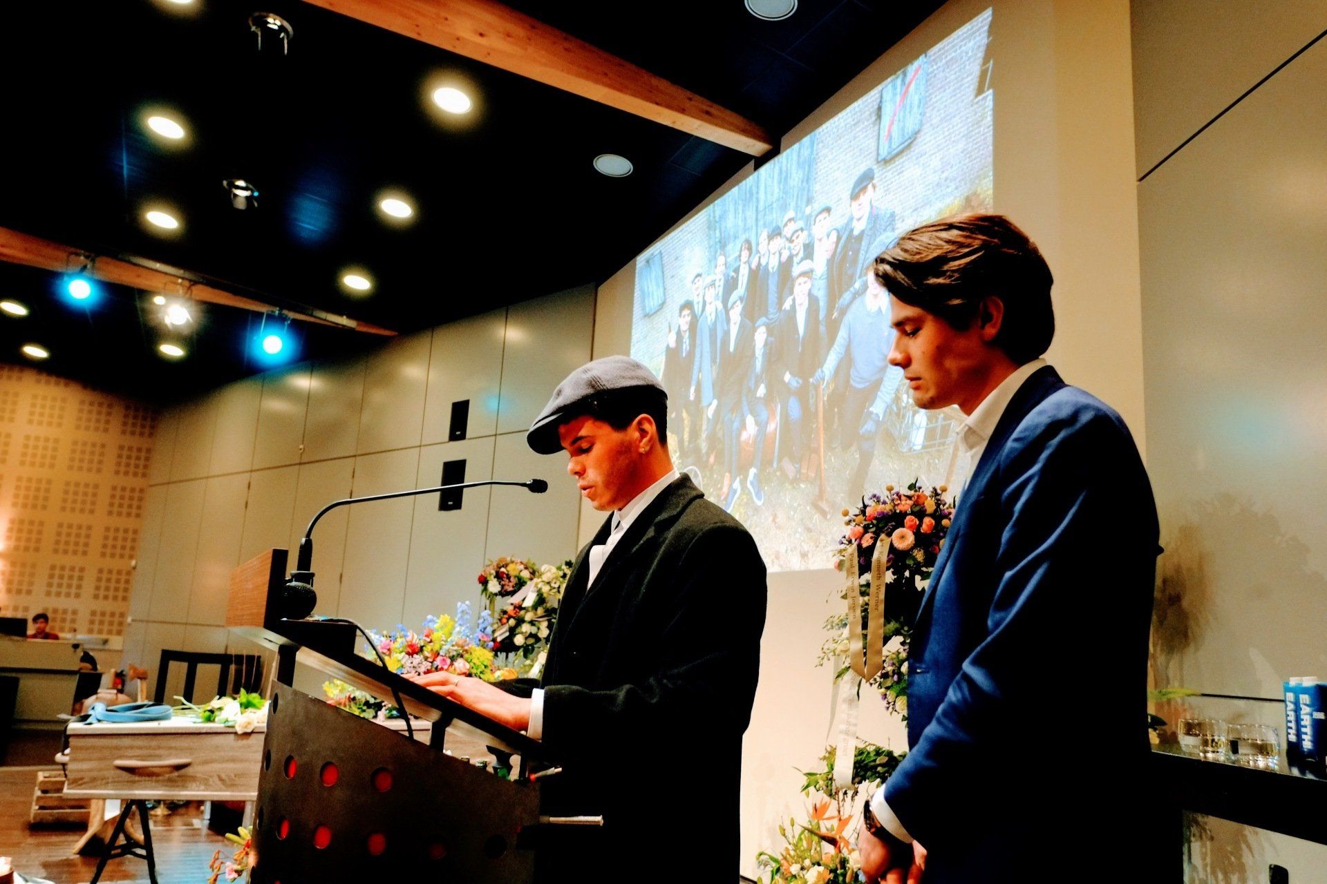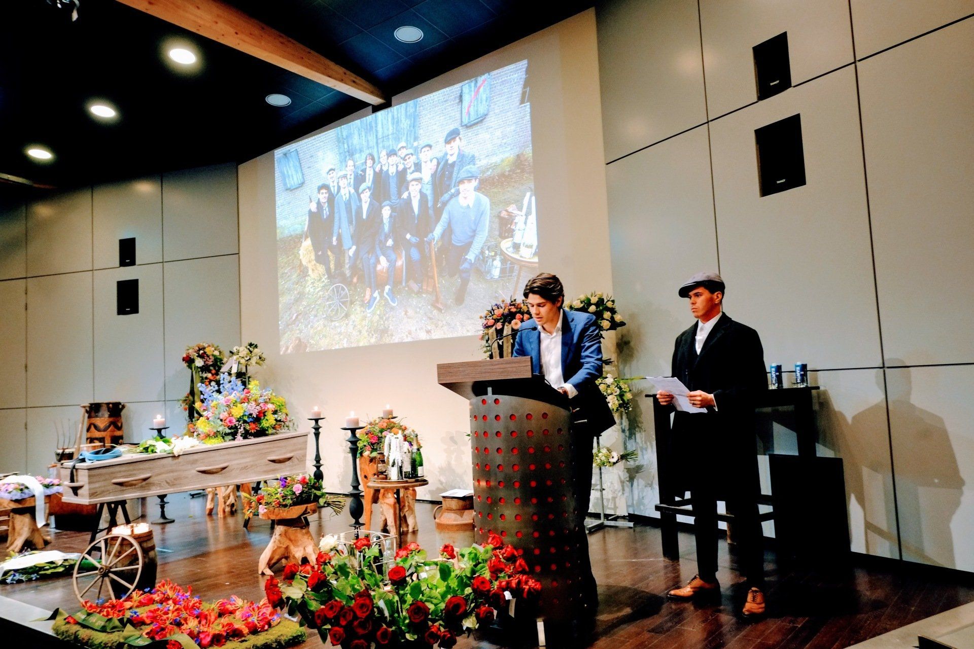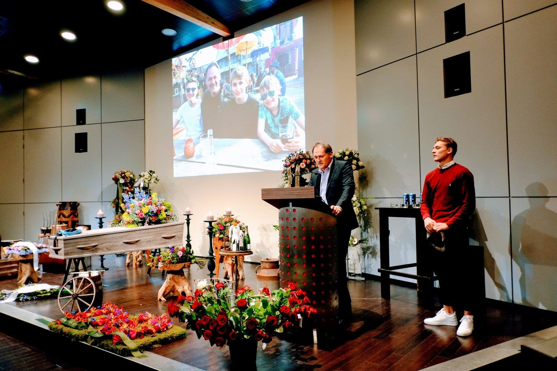 Op vrijdag 8 januari 2021 was de afscheidsdienst van Stefan. In Burgers' Zoo, een mooiere plek kun je niet bedenken. Het moest in besloten kring vanwege de coronamaatregelen, maar gelukkig kon de naaste familie en zijn vriendengroep aanwezig zijn. Het was heel bijzonder. Er zijn mooie woorden gesproken, muziek van/voor/over hem gedraaid en veel foto's en filmpjes gedeeld. Het was mooi. Er waren ongelooflijk veel bloemen. We hebben met zijn allen 'You never walk alone' gezongen', met zijn allen gehuild en met zijn allen het glas geheven en gedronken op het leven van Stefan.